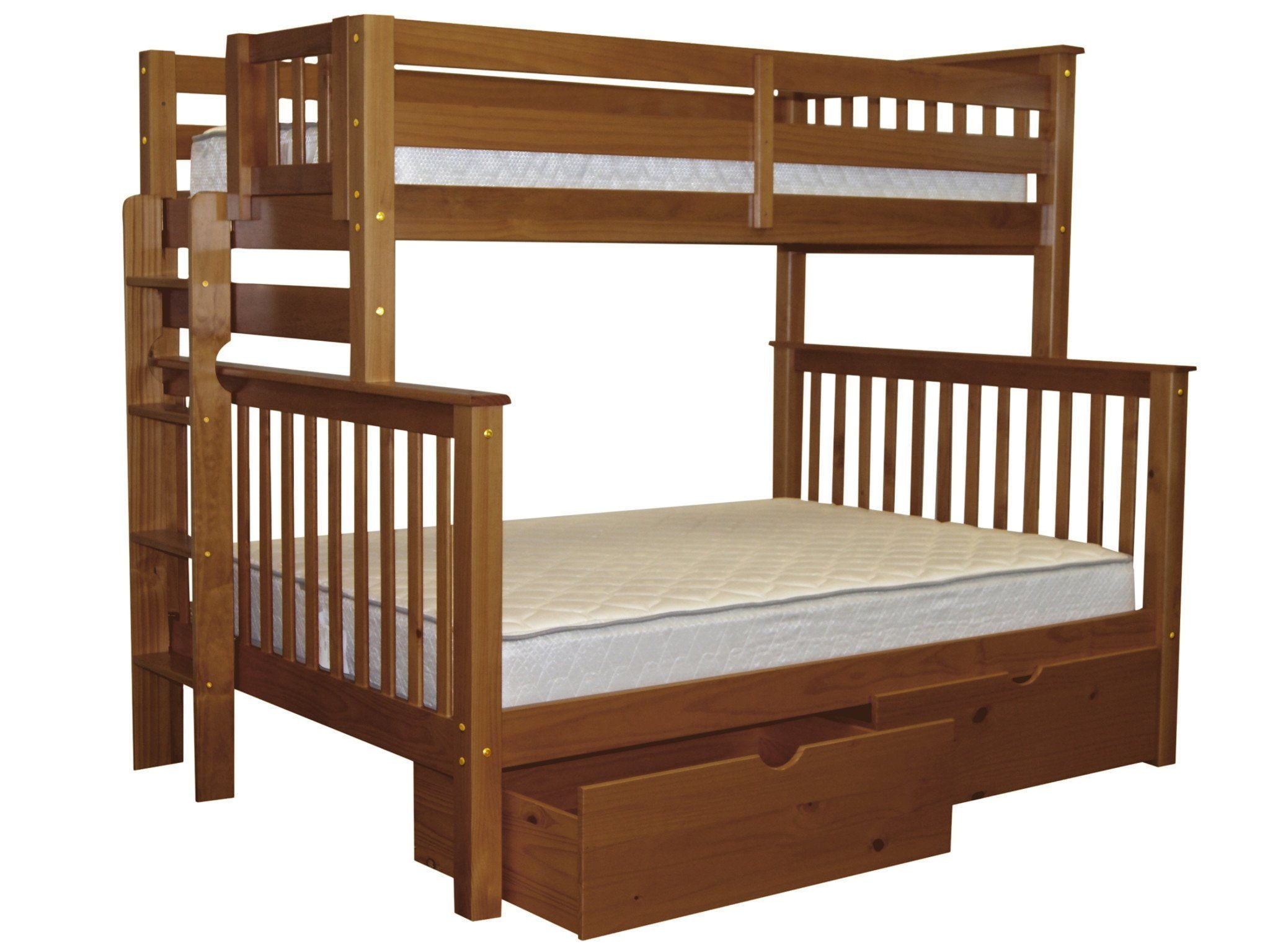 Best twin over full bunk bed review & ratings in 2020. As you'd expect being the biggest kind they are likewise the most costly. If the bunk bed will be placed next to the wall, the guardrail that runs the full length of the bed should be placed against the wall to prevent entrapment between the bed and the wall. Bedz king bunk beds twin over full twin trundle 650 worth it. All in one twin bed with twin trundle and drawers. Our bunk beds are built for adults near park city utah. Twin over full bunk bed with drawers helpful for any kind of age. Manufacturers offer twin over twin bunk beds, but if you prefer larger size for your children or guests who share a room, twin over full bunk beds the full bed even has wheels so you can rearrange the bed very easily or position it wherever you prefer to. Solid wood honey finish twin over full brazilian pine bunk beds with trundle or can be split to 1 twin and 1 full size bed. Bunk bed can be assembled so that stair. Can be separated into one twin and one full size bed. Bowery hill bunk bed with 2 storage drawers. Bedz king mattress corsicana mattress mattress protectors malouf bed in bag.